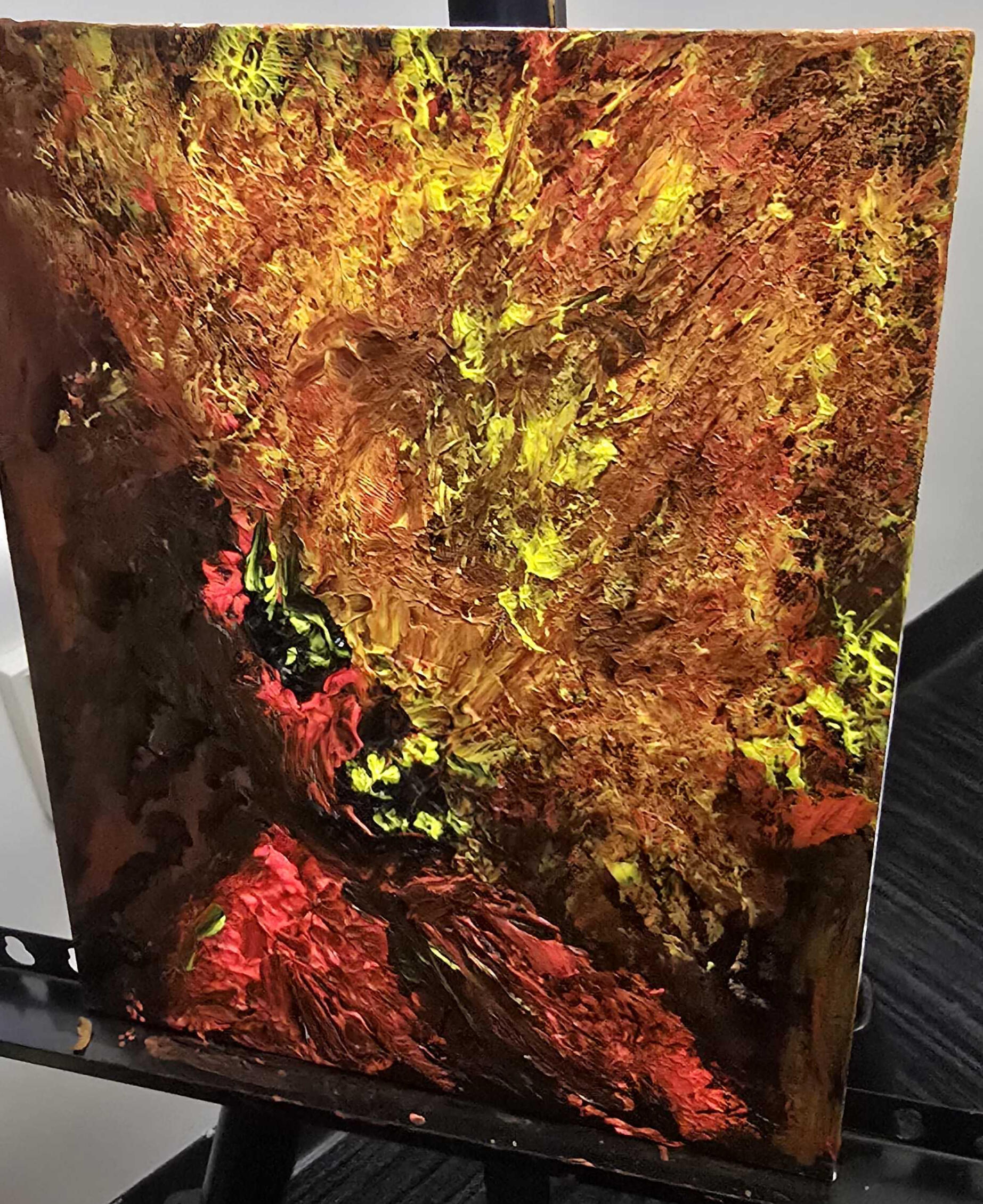 viewing or attempting to read into my work.God was created by the fear of the followers of important figures who say they mandate the Lord's law. I believe I can emulate this.I do not aim to please others with my many different types of work; I am my own demon, and I aim for honesty no matter how disgusting it is.If one has a vitriolic amount of hatred for me or my art, my art is aimed to cause, at best, dismissal, at worst, anguish to those who see it that way.Violence is needed in my art, metaphorical and literal. Self-violence and violence against the canvas, as well as the projection of my rage and suppressed feelings in